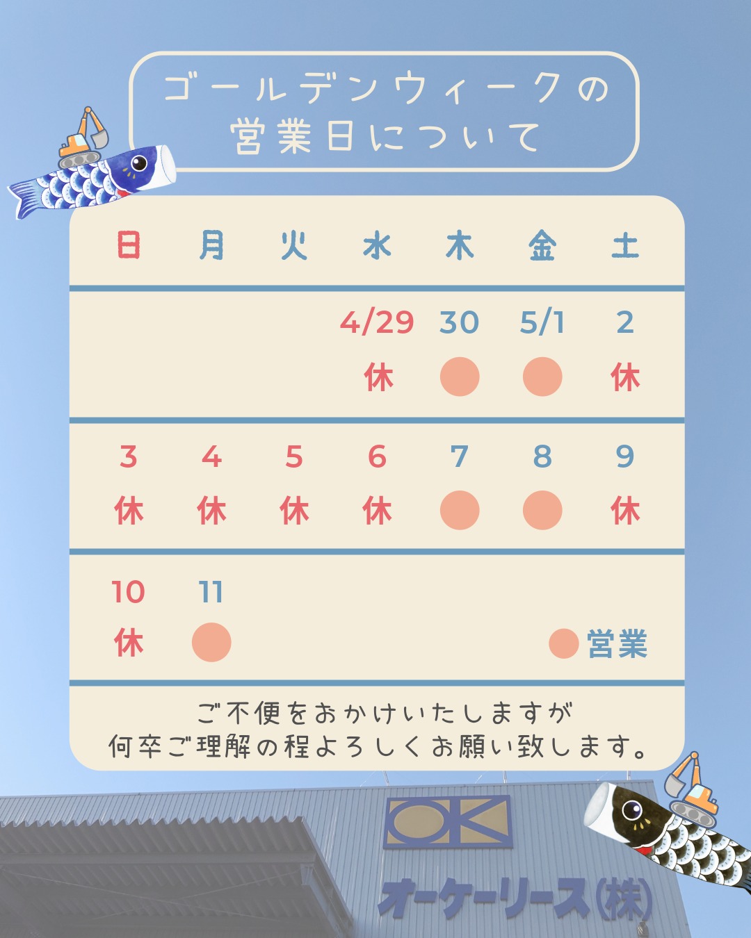 【ゴールデンウィーク休業日のご案内】